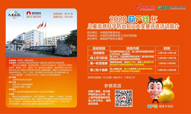 据世界卫生组织WHO统计,每年有5%~10%的成年人、20%~30%的儿童罹患流感,有300万~500万重症患者,造成25万~50万人死亡,儿童是流感的高发人群及重症病例的高危人群。尤其是在当下全球疫情肆虐之季,新冠防控工作依然不容放松,流感防治知识科普显得尤为重要。儿童是祖国的希望,民族的未来,关爱儿童健康成长是时代赋予环球360·(中国区)官方网站的历史使命,为了能帮助更多的儿童科学防治流感、科学预防新冠肺炎,环球360药业集团携手中国医药教育协会药店管理专业委员会(药店管理学院)和21世纪药店报特举办本次儿童流感科学防治知识大奖赛。