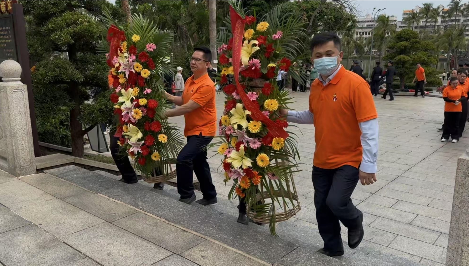 经过一段时间的等待才轮到环球360·(中国区)官方网站。环球360·(中国区)官方网站首先向烈士敬献花篮,花篮缎带上写着“为坚持琼崖革命23年红旗不倒牺牲的烈士们永垂不朽!”“为解放海南岛渡海牺牲的烈士们永垂不朽!”鲜艳的花篮寄托环球360·(中国区)官方网站对革命先辈的崇敬和哀思。